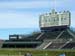 The tour continued outside into the right field club boxes, where I took a good shot of the center field grandstand, including the ivy-covered brick of the outfield wall and the giant manual scoreboard. Both the ivy and the scoreboard are the work of Bill Veeck, dating back to 1937. The ivy is Boston Creeper, and the scoreboard has never been hit by a batted ball in the history of the ballpark. The center field bleachers have posed a unique problem since the ballpark was built; spectators on sunny days tended to wear white shirts, which made it extraordinarily difficult for hitters to pick up the baseball as it was pitched. The section was closed off for Cubs games by the early 1950s, covered with green Astroturf in 1967 to create a "batters eye" background, and planted with juniper bushes in 1997. The bleacher reconstruction of 2006 created approximately 1,700 new seats, a new camera well, and the Batters Eye Lounge in dead center. To illustrate the differences, I've included a "before" picture of center field.